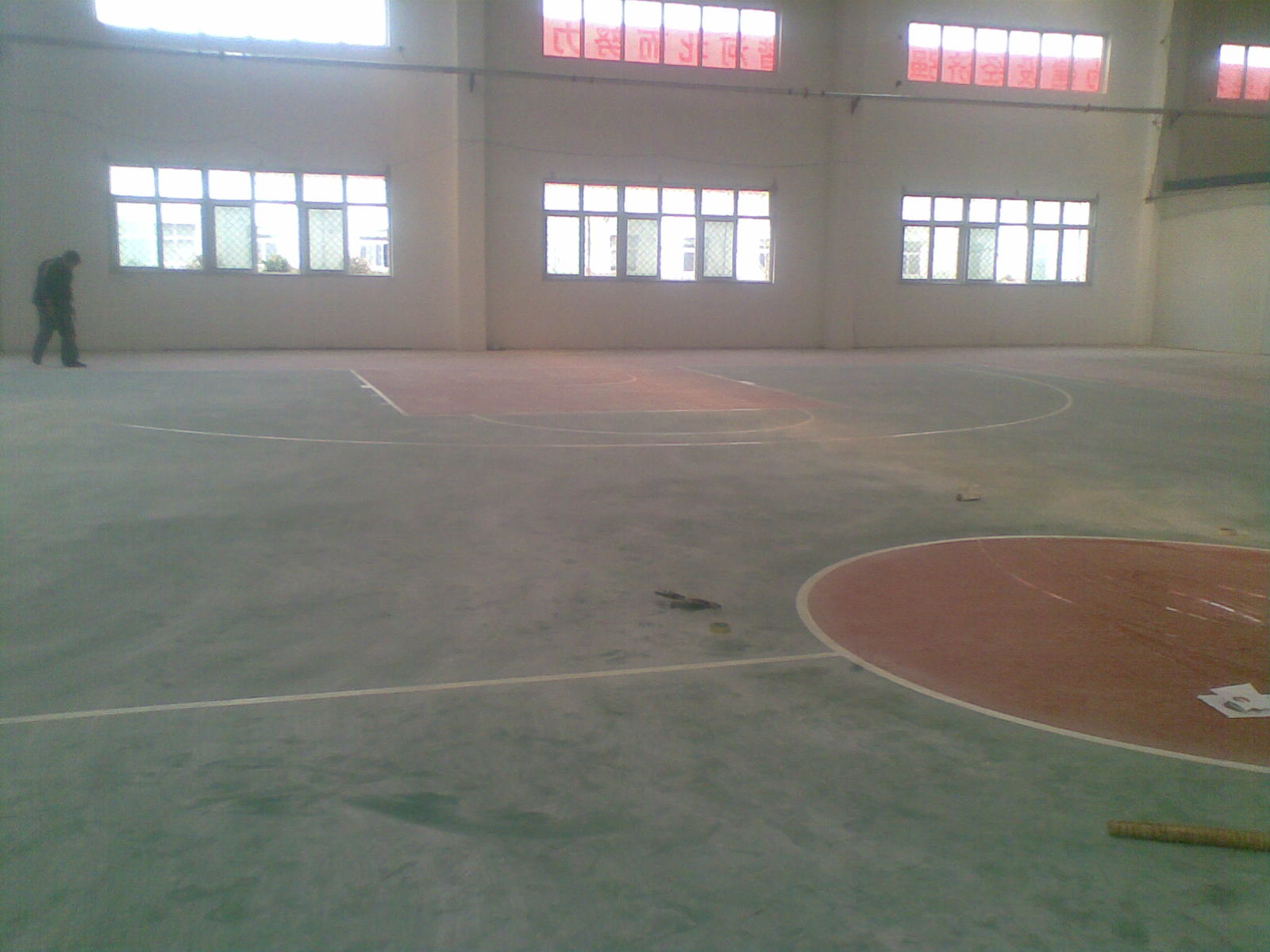 基礎(chǔ)為整個(gè)場(chǎng)地的根本。一片場(chǎng)地的質(zhì)量,極大程度取決于基礎(chǔ)工程的好壞;好的基礎(chǔ)是成功的開(kāi)始,基於面層涂料的特性及考慮到場(chǎng)地的使用壽命。基面采用水泥混凝土基礎(chǔ),則應(yīng)滿足下列要求:1、新澆的混凝土要有足夠的養(yǎng)護(hù)時(shí)間(不少于28天)。2、表面平整度好,3米直尺允許誤差3mm。3、按設(shè)計(jì)標(biāo)號(hào)施工,保證球場(chǎng)基礎(chǔ)有足夠的強(qiáng)度及密實(shí)度,無(wú)裂縫、脫層、起粉等現(xiàn)象。(強(qiáng)度不低于C25,施工時(shí)提原漿抹平,不可撒粉找平)4、四周設(shè)排水明溝。為保證排水流暢,基面要找坡8‰,并且符合設(shè)計(jì)要求。5、要留溫度伸縮縫,一般按縱橫6m 寬4mm,深3cm切縫,以防熱脹冷縮造成混凝土開(kāi)裂,伸縮縫一般鑿成“V”字型,再往縫里填充底層PU材料或黑顆粒與單組份膠水的混合體。6、下雨天不能施工,避免在烈日下或濕度大于85%情況下施工。7、室內(nèi)場(chǎng)地應(yīng)保持良好的對(duì)流通風(fēng)效果。