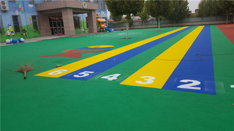 安全地墊 主要材料:橡膠料、單組份膠水、EPDM顆粒 安全地墊分類:無縫彩色EPDM地墊、塊狀EPDM地墊、染色塊狀安全地墊、幻彩地墊 特點: 染色塊狀安全地墊:價格低、實用,常用規(guī)格500*500*25mm 塊狀EPDM地墊:色彩鮮艷、可隨便搭配出絢麗圖案、價格適中 無縫EPDM地墊:現(xiàn)場鋪設、可制作彩色無接縫圖案、價格相對較高、多用于幼兒園游樂場 幻彩地墊:塊狀、主色中加入適量其他顏色EPDM顆粒、柔和的觀感效果、價格適中。 用途:體育器械區(qū)地面、攀巖活動區(qū)地面、兒童游樂場所地面