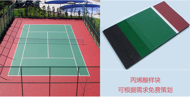 容易,價格適中,維修及維護(hù)方便。 適用范圍: 適用于室內(nèi)外丙烯酸籃球場、 丙烯酸網(wǎng)球場、 丙烯酸排球場、 丙烯酸羽毛球場等, 還可做成彩色地坪,美化環(huán)境。
