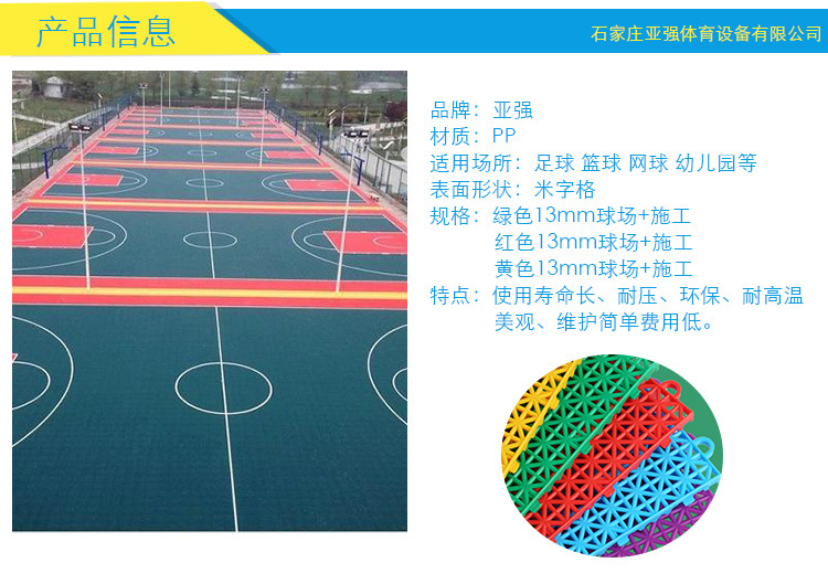 6.安全防護(hù):全眾懸浮式拼裝地板特有的專利設(shè)計(拼裝地板底部跟支撐柱支撐,拱形排水槽,邊緣采用公扣母扣銜接)很好