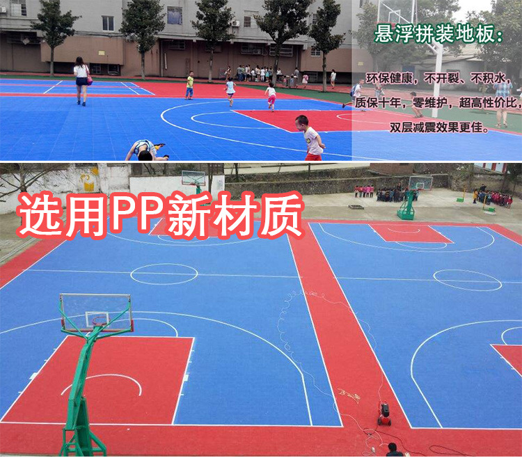 1.無毒環(huán)保:懸浮運動地板主要采用環(huán)保材料聚丙烯(PP),無毒、無味、防水耐濕、不寄生細(xì)菌、綠色安全健康環(huán)保,可回